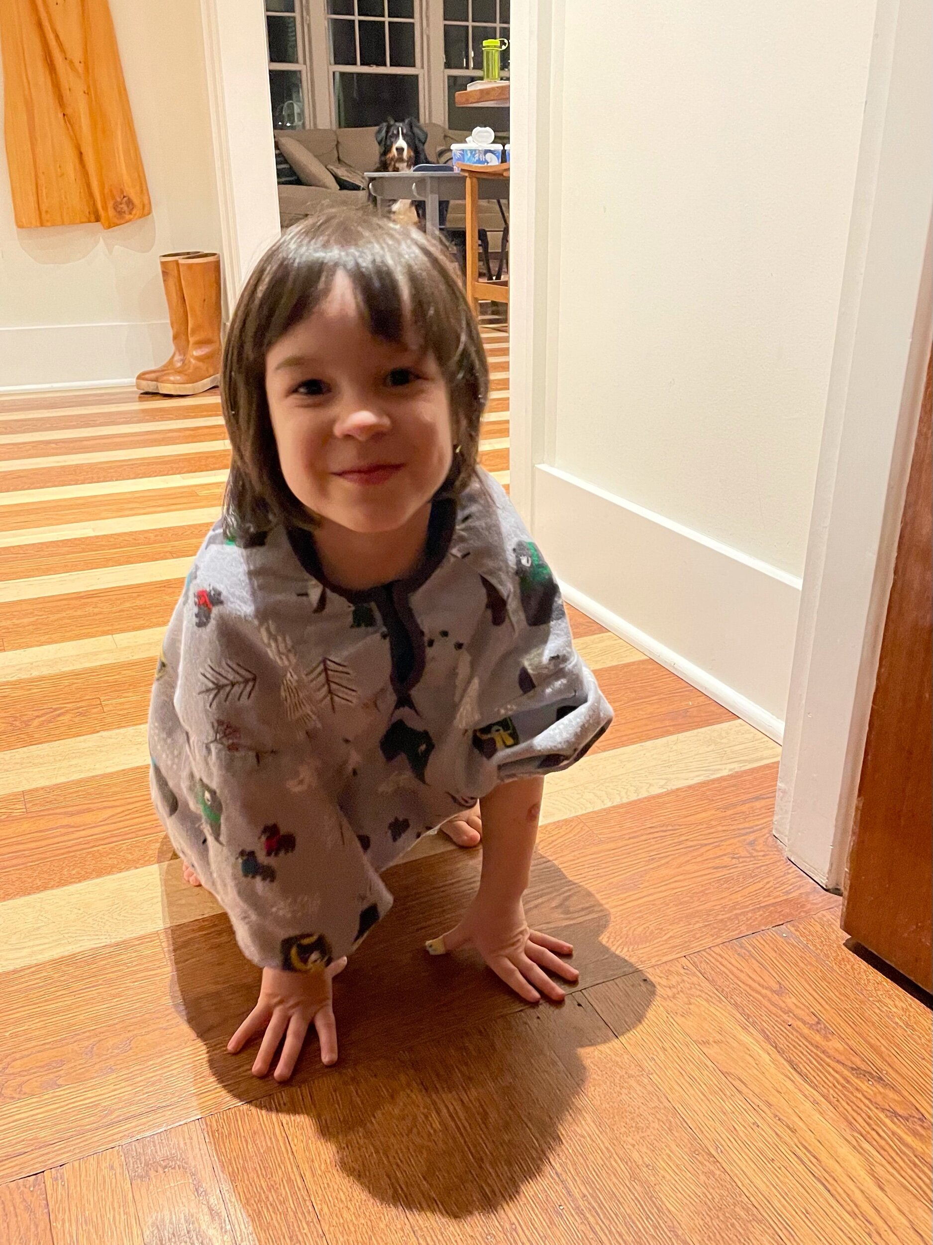 Feb 11 Feb 11 Lummi’s new best friend Sarah Lawer We have a new pet! Meryl put on Lummi’s holiday pajamas and magically turned into Fluffer the dog:)