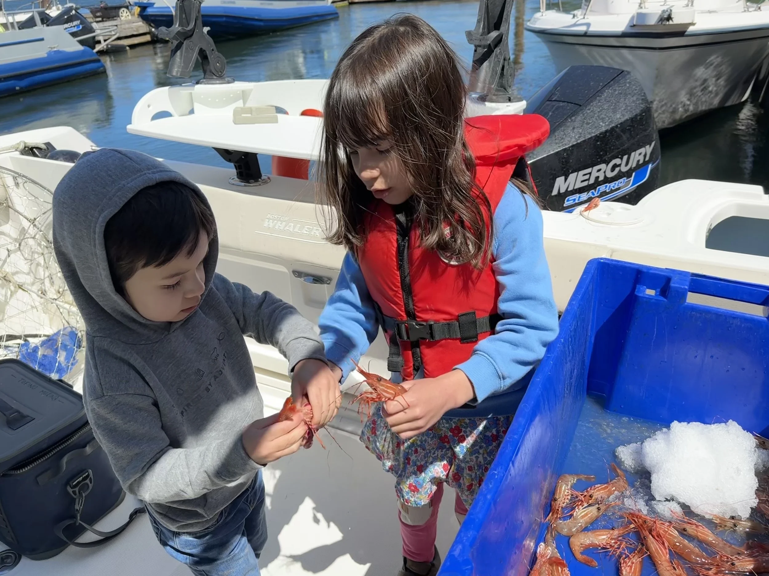 Off with their heads before heading into the deep freeze for the trek home. Meryl is explaining to Holmes how to twist and pull…ocean to table here, folks:)