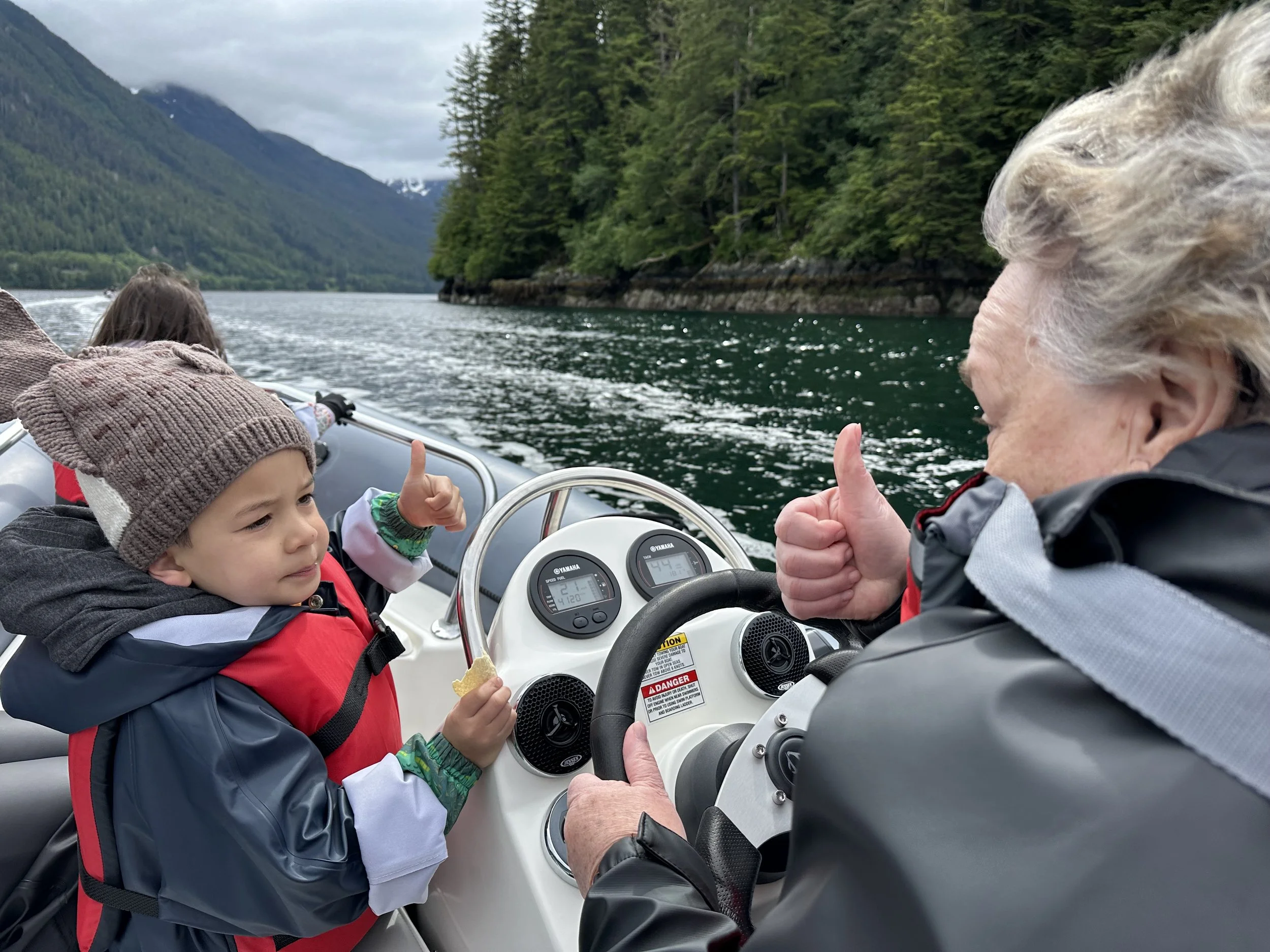We took a Zodiac boat eco tour in Sitka and Xanna was our captain! Follow the leader style boating. Sure, we signed our lives away, and it was a pretty cool way to see the scenery.