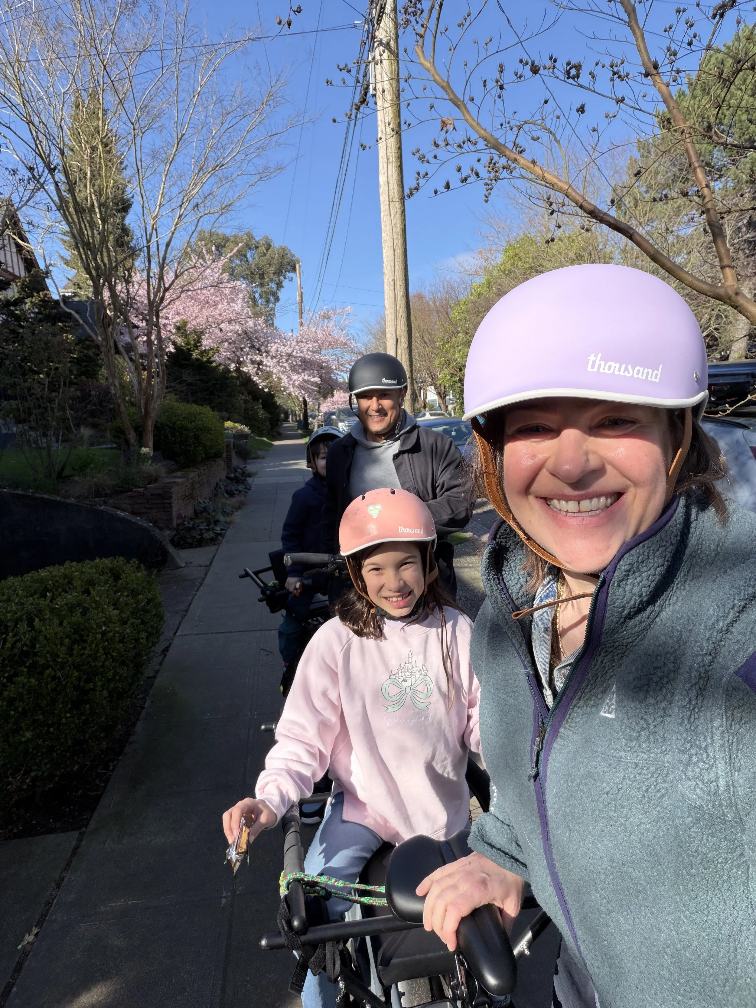 The sun is out, the cherry trees are in bloom, and it’s time for biking! We biked to the Seattle Children’s Theater today to see Young Dragon: A Bruce Lee Story.